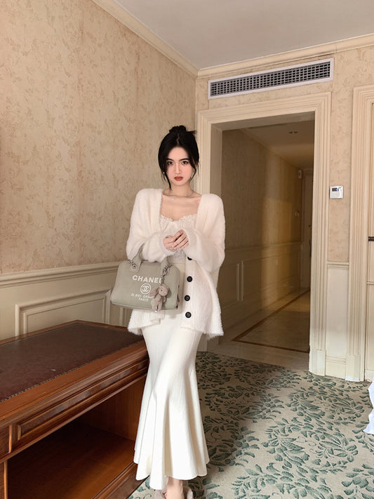 Sat. 隨性老錢風白色闊腿褲 圓領針織外套