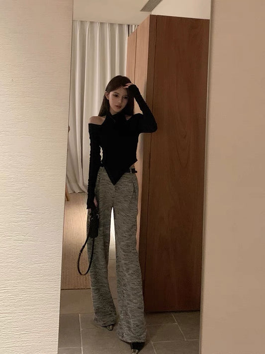 Sat. 一字肩打底長袖針織 休閒褲 經典2色