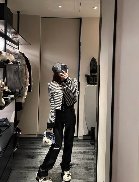 Sat. 小香風格紋壓印牛仔外套 & 直筒褲