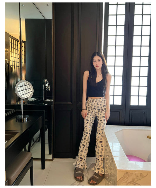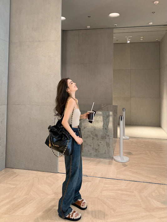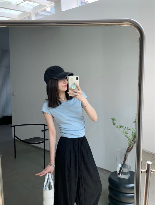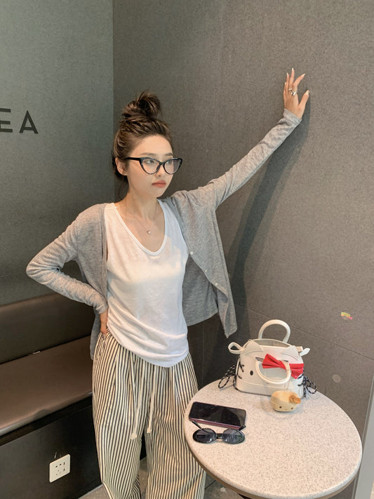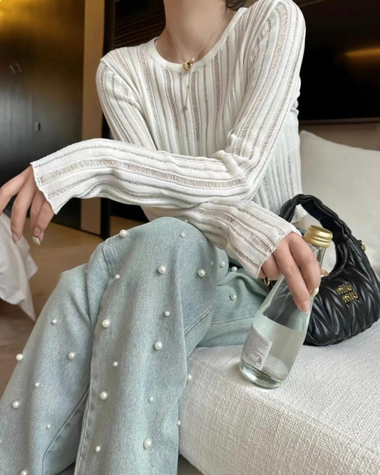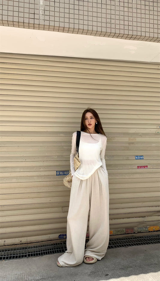 Mon. 透視感上衣 & 落地休閒褲 奶白