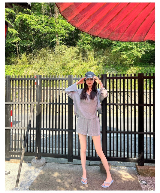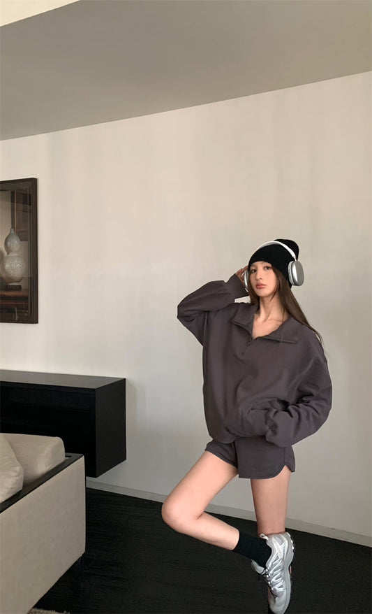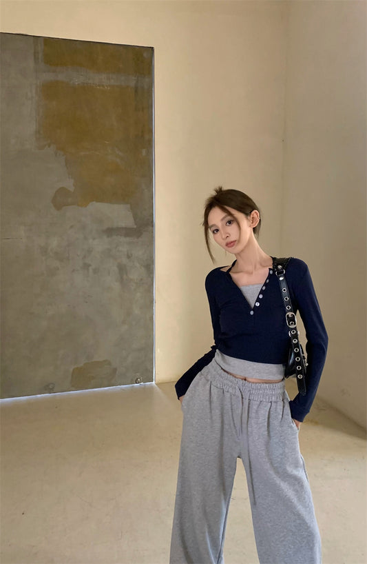 Wed. 假兩件式排扣上衣 & 運動休閒褲 灰