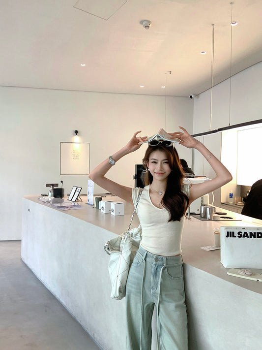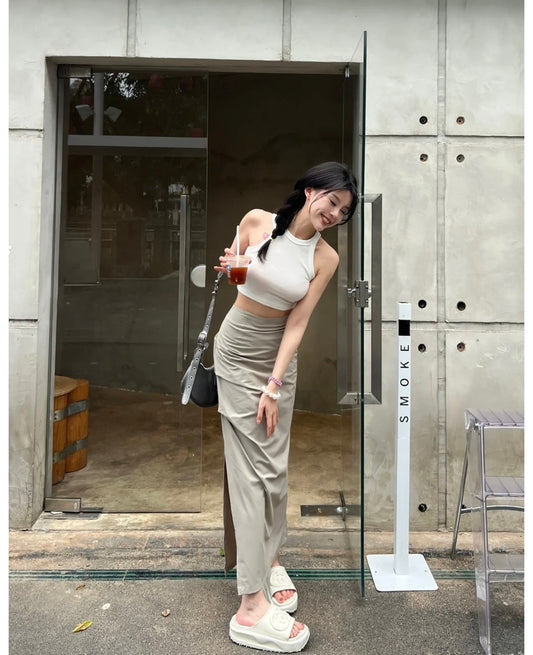 Sat. 極簡老錢風穿搭 背心 半身裙 白