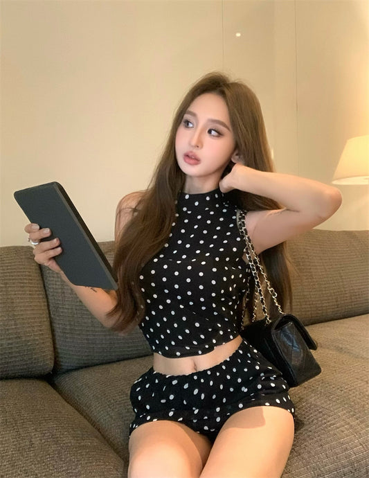 Set. 復古波點挖肩套裝