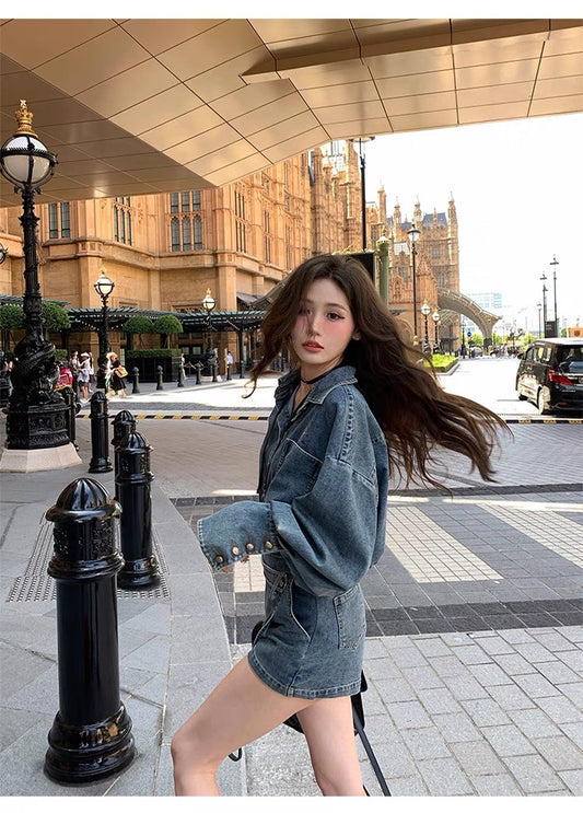 Sat. 港風拼接單寧襯衫外套 & 短裙