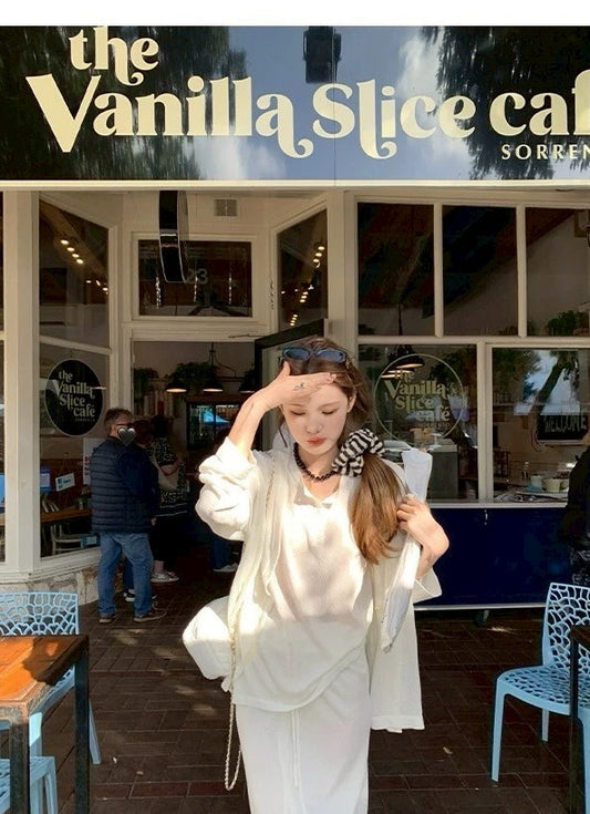 Mon. 折疊海風 不起球防曬針織老錢3件套 白