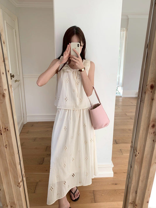 Fri. 法式氣質邦苔美女圓領背心高腰半身裙套裝 白
