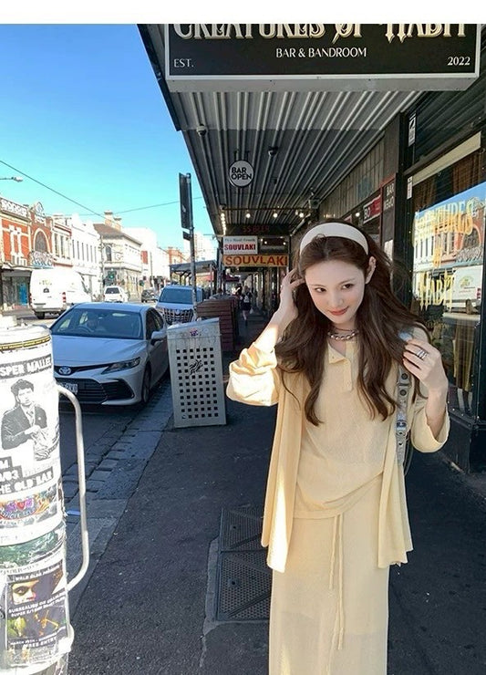 Mon. 折疊海風 不起球防曬針織老錢3件套 黃