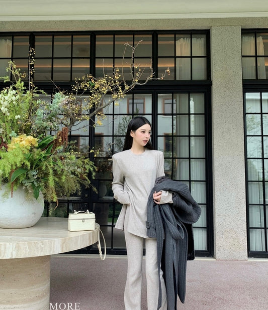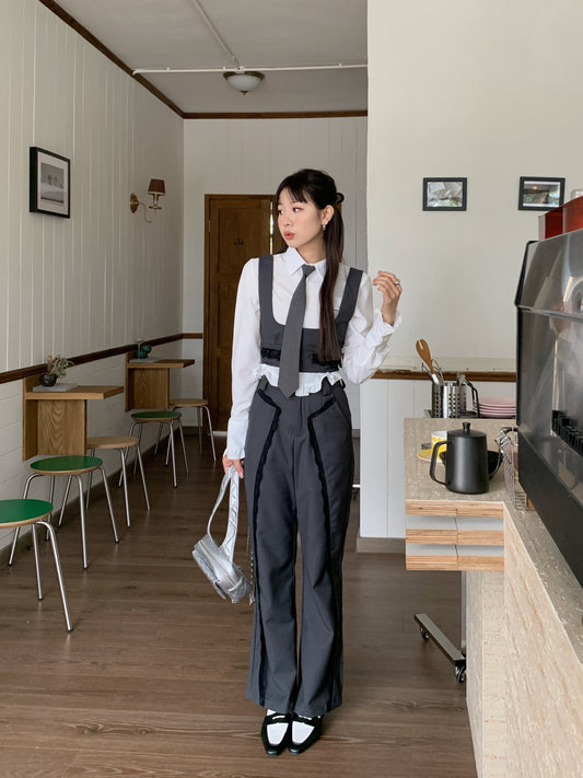Sat. 復古格雷 木耳邊襯衫 灰系蕾絲設計感西裝褲