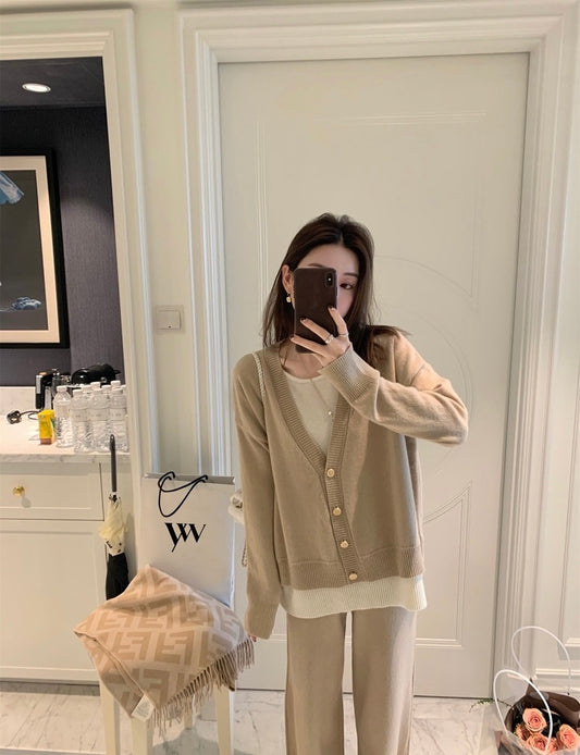 Sat. 雲朵澎澎v領襯衫套裝 駝色