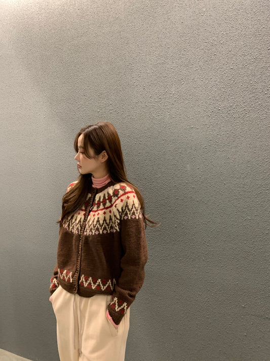Sun. 雪花片針織刺繡毛衣 咖