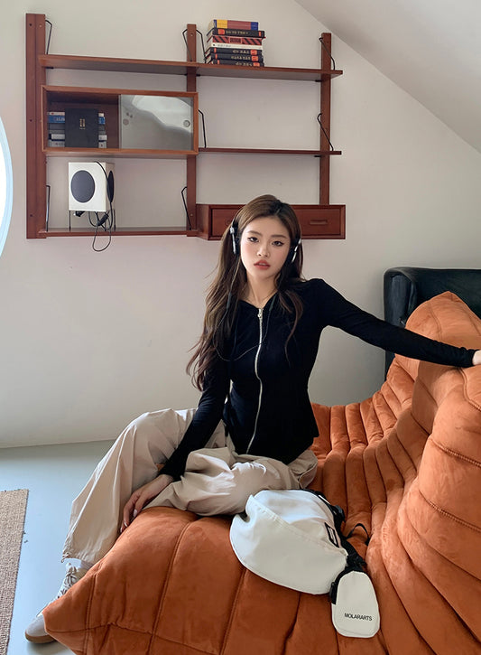 Sat. 美式修身連帽外套 黑 & 慵懶杏色工作褲