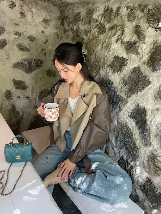 Fri. 甜酷妹 外縫線港風皮外套