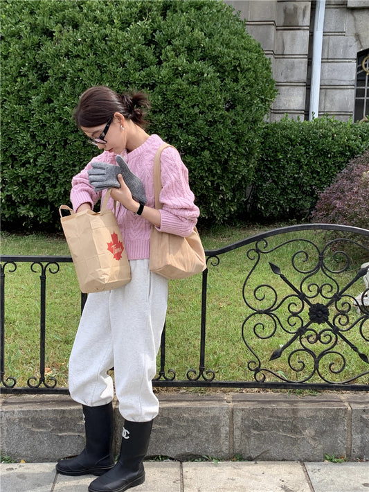Mon. 麻花毛線編織外套 淺粉