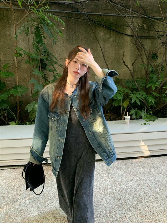 Sat. 通勤百搭圓領個性牛仔外套 & 連身裙