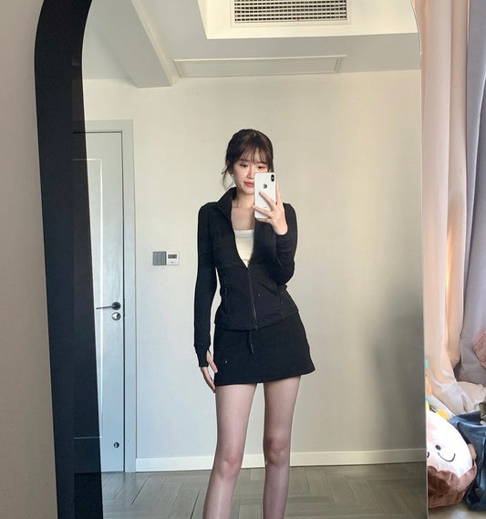 Mon. 顯瘦高彈力瑜伽外套 黑