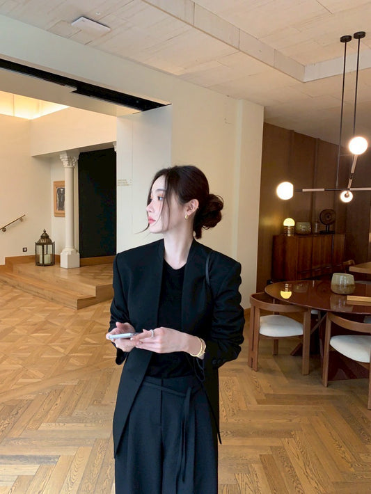 • Sat. 簡約All Black 金屬釦修身廓形外套 西裝褲