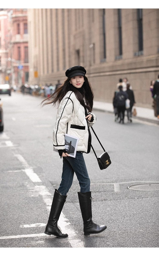• Sun. 經典山茶花 菱格白鴨絨外套