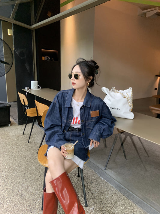 Sat. 港風拼接單寧襯衫外套 & 短裙