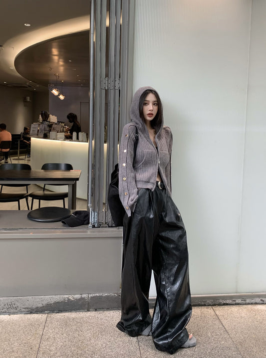 • Sat. 個性按扣袖設計連帽外套 灰