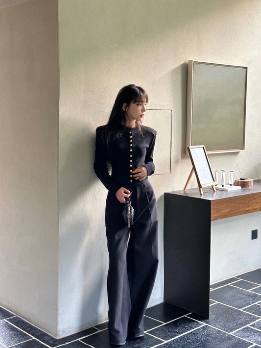 Sat. 簡約All Black 金屬釦修身廓形外套 西裝褲