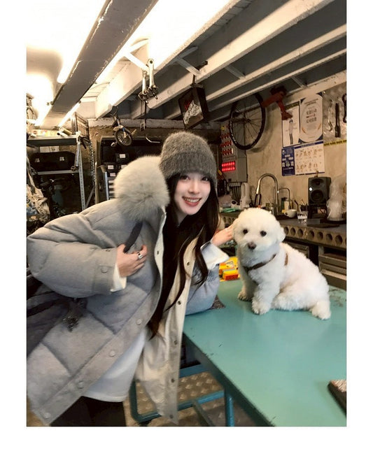 • Thu. 安心90白鴨絨斜紋吐司毛毛連帽羽絨外套