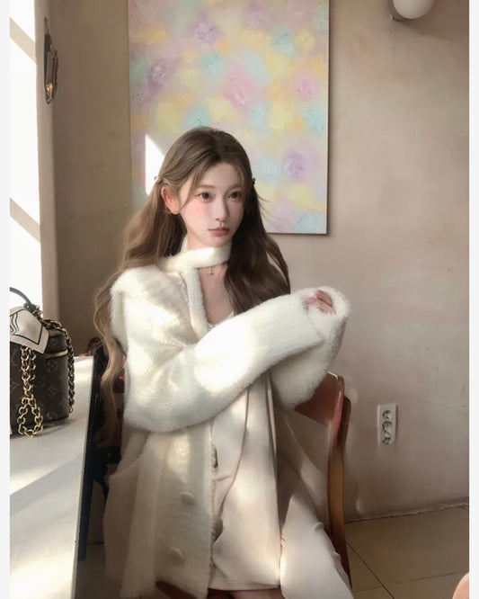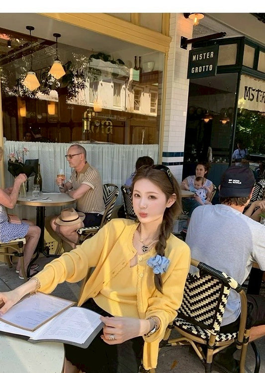 Mon. 琥珀午后 韓系氣質背心針織外套2件組 鵝黃