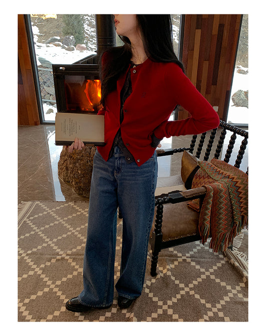 Mon. 穿搭減法 假兩件式針織開衫 漿果紅