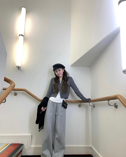 Fri. 溫暖過冬 基礎羊毛圓領排扣針織外套 灰