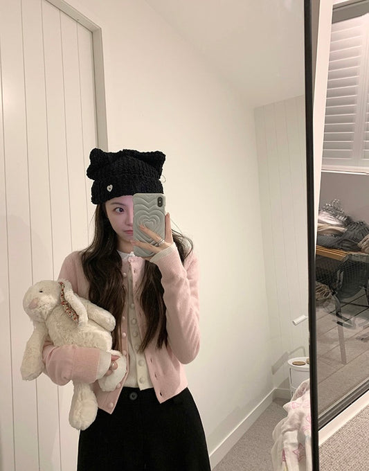 Fri. 溫暖過冬 基礎羊毛圓領排扣針織外套 粉