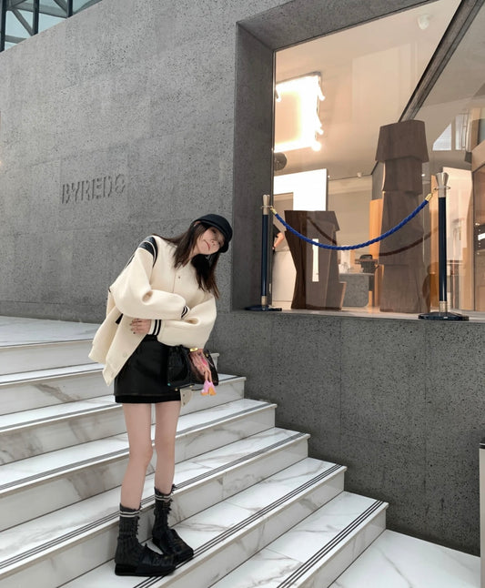 Tue. 山茶日記 氣質小香羊氈毛百搭外套 白