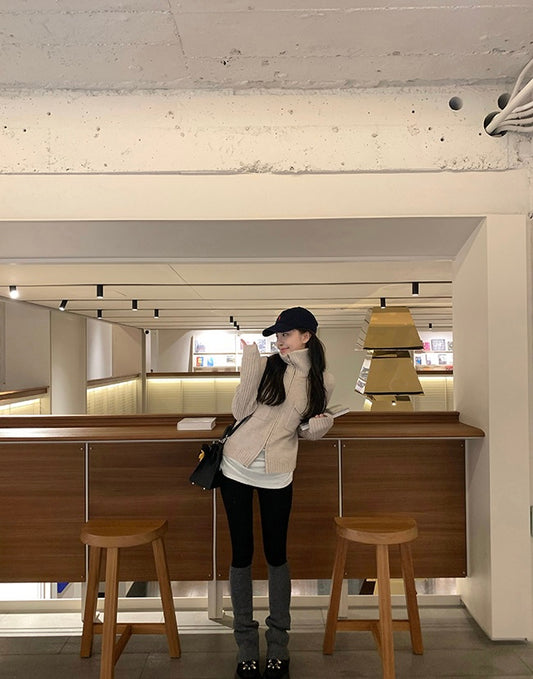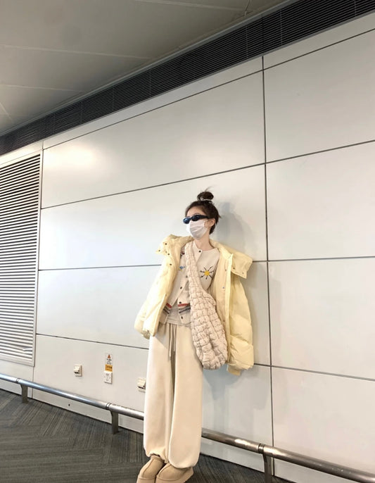 Thu. 香軟玉白 暖羊羊絨感粗壓紋連帽針織外套