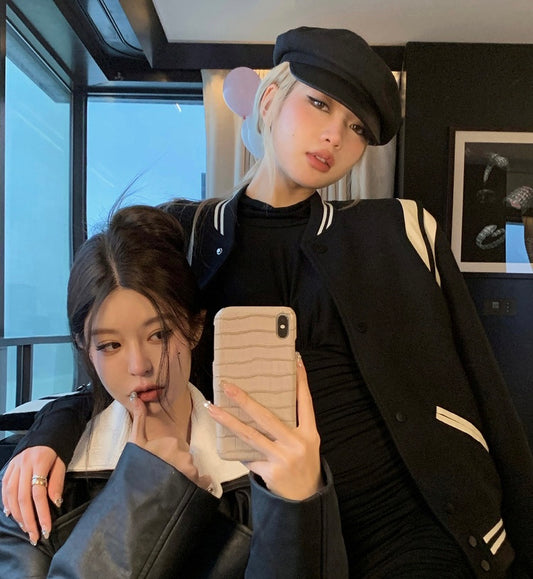 Fri. Oversize重工拼色棒球外套 2版設計 黑