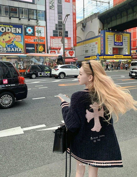 Wed. 落日倫敦 高克重十字刺繡針織開衫