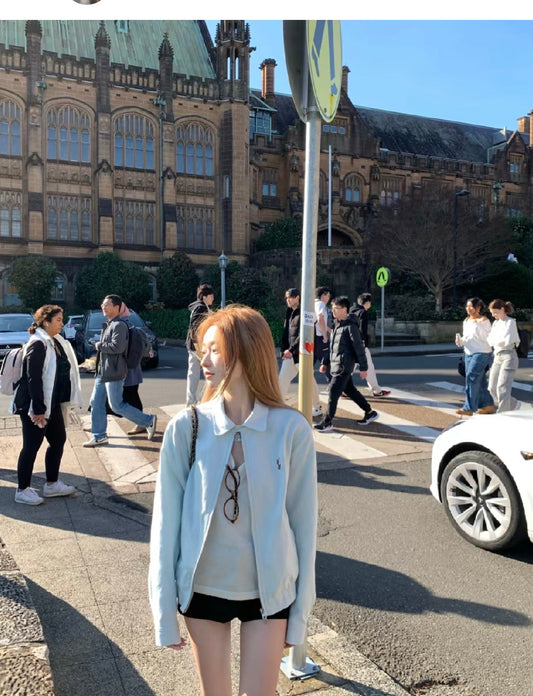 Mon. 英倫輕氧RL 刺繡馬baby藍夾克外套