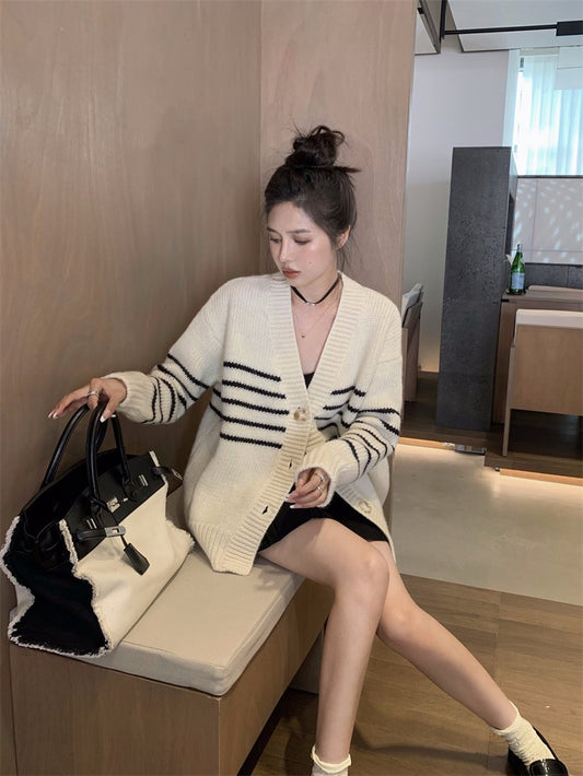 Sun. 溫柔軟糯 百搭條紋杏仁針織外套