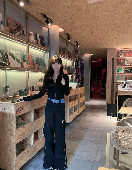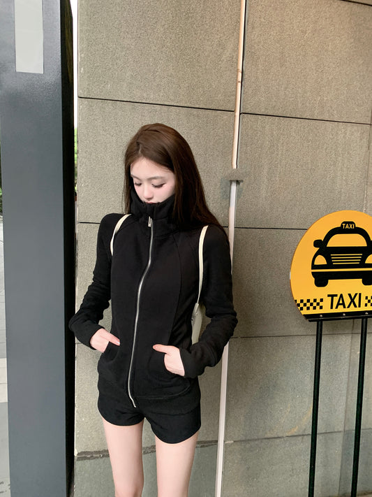 • Sun. 秋冬Scuba 修身版型立領連帽外套 黑