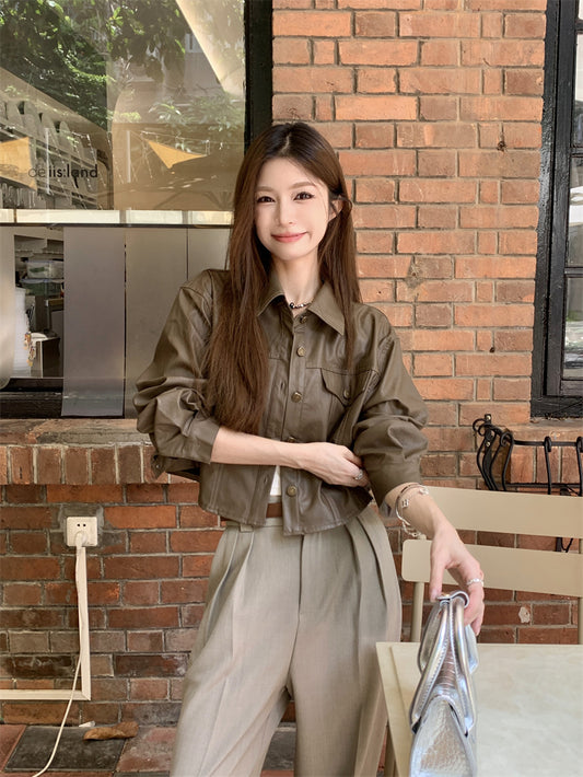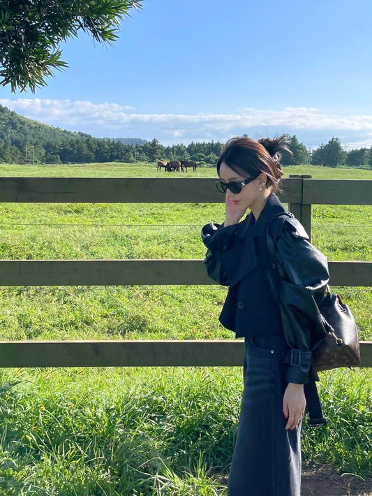 Mon. 今年必入短版皮襯衫外套 黑/咖