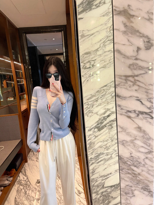 • Wed. 學院千金 撞色修身tb風針織外套 藍