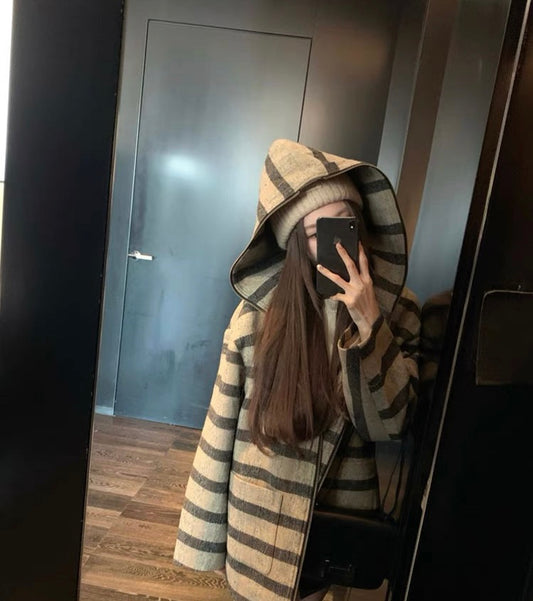 • Sun. 素描畫紙 一體剪裁條紋風衣外套