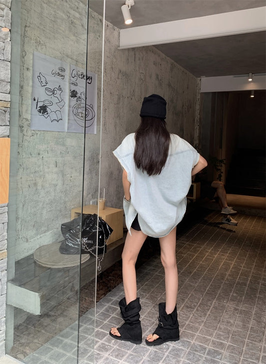 Sun. 淺色水洗 百搭落肩寬鬆牛仔背心