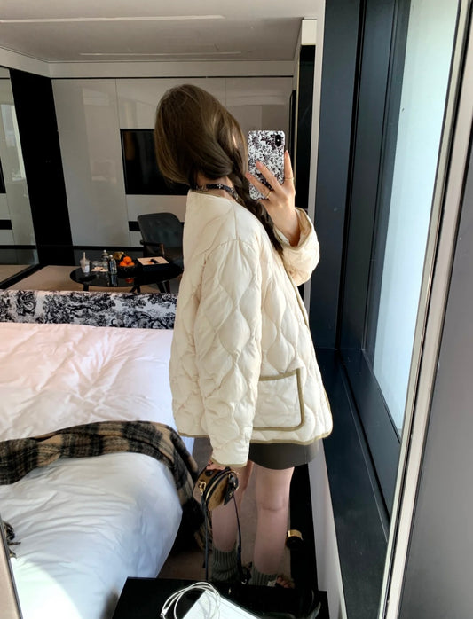Mon. 軟棉菱格包邊輕薄棉襖 奶白