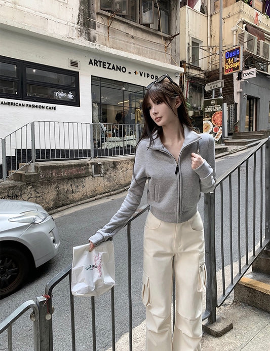 • Sun. 高克重 簡約休閒立領短外套 灰