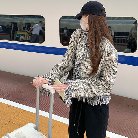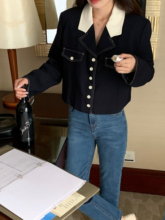 • Wed. 經典門襟設計 肌理感小香銀釦針織外套 黑