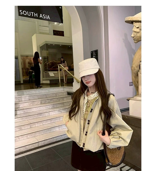 Thu. 明媚香港 復古花苞圓領夾克 卡其