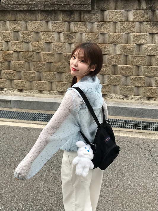 Tue. 日漫少女可愛連帽波點拉鏈外套 白