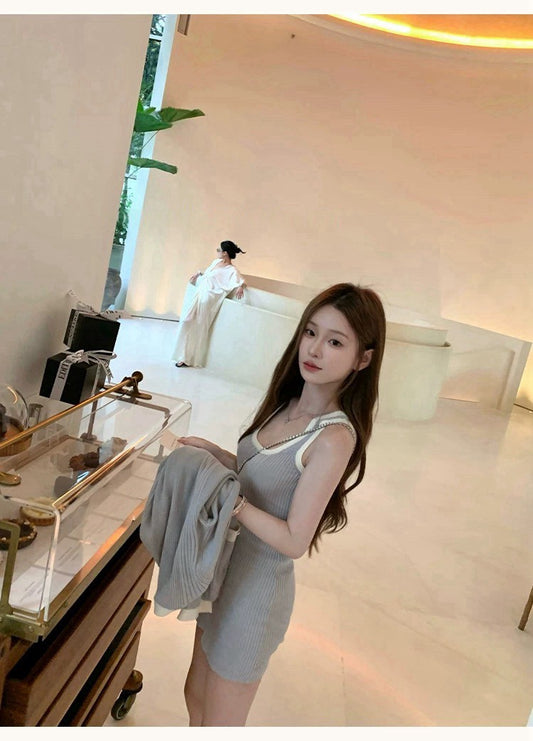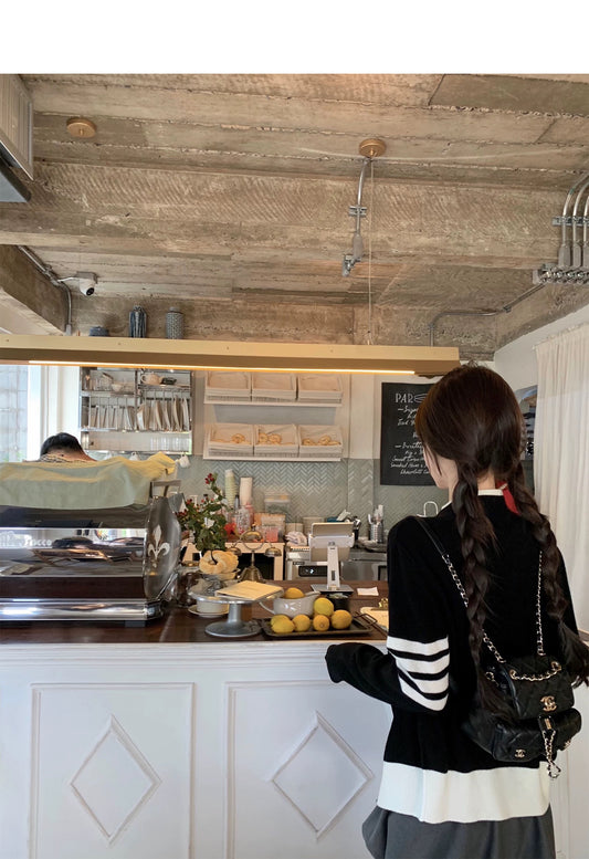 Sun. 清純學妹 不挑人版型撞色針織外套 灰/黑