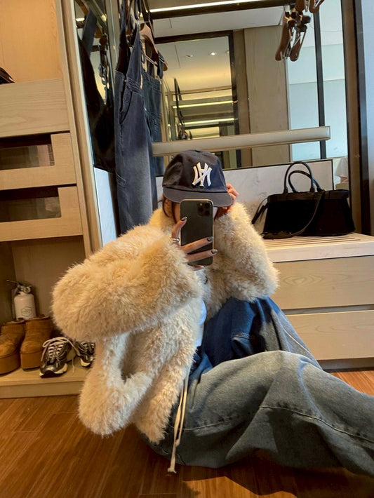 Fri. 歐美加厚保暖毛毛絨口袋外套