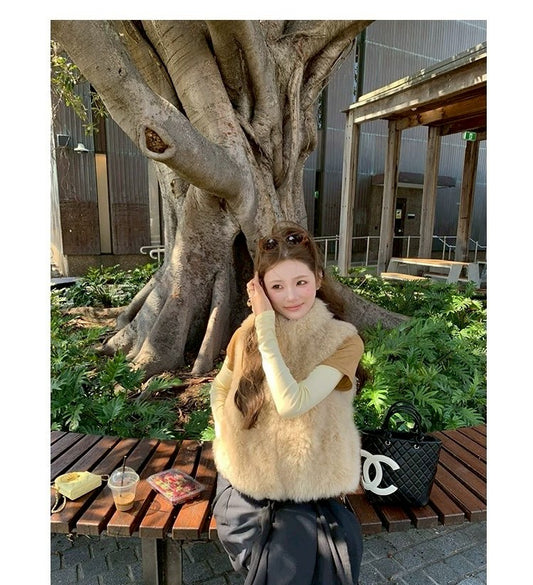 Tue. 兩色選稀珍圈圈羊毛馬甲背心 奶茶色/烏木咖