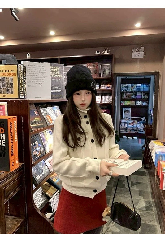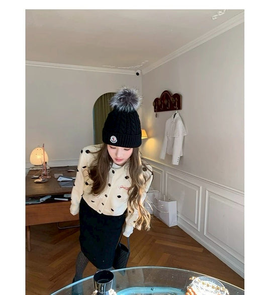 Tue. 雪夜遊樂園韓系波點撞色針織外套 白/黑