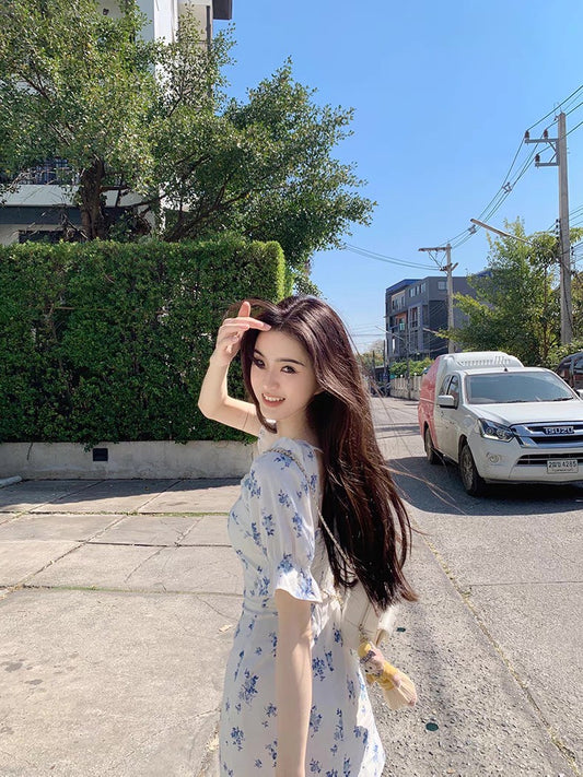 Fri. 春日初戀 秀智同款藍色花方領碎花洋裝